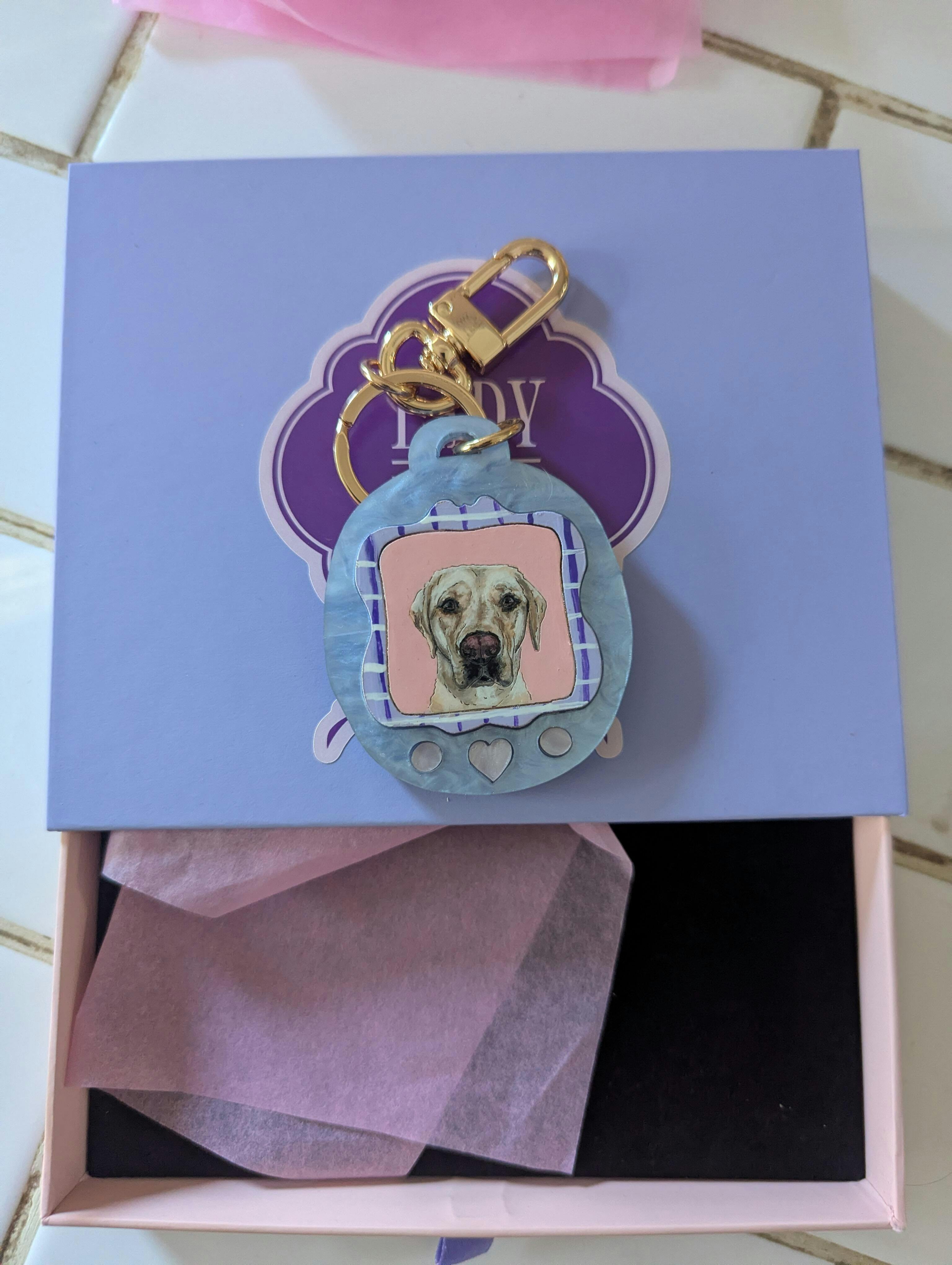 Carry a piece of nostalgia with our LADY & LORD X BHABSY Y2K pocket pet portrait keychains. Inspired by the beloved virtual pets of the y2k era, we hand paint your pet's photo onto a keychain, allowing you to take your furry friend with you wherever you go. The perfect accessory for pet lovers.